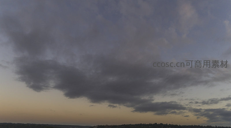 厚重的灰蓝色云团在天空中缓缓流动,下方是温暖的橙黄色天幕,构成一幅充满动感与层次感的黄昏云海奇观。