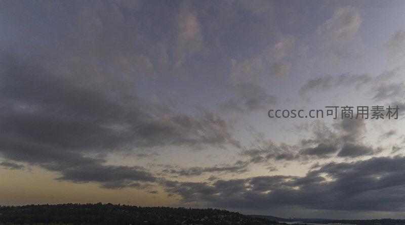 从高空俯瞰,城市在云层之下静静安眠,云朵如波涛般铺满天空,夕阳将云隙染成金色,展现宏大的城市黄昏景象。