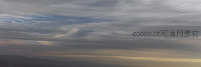 广袤天空中云层缓缓铺展,远方大地被暮色温柔笼罩,天地交接处透出一丝暖意,令人心旷神怡。