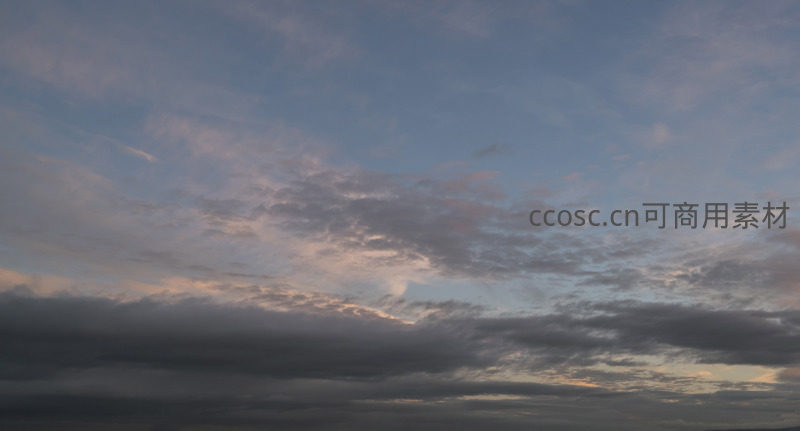 天空被晚霞温柔浸染,层层叠叠的云朵如轻纱般飘动,在蓝灰底色上晕开粉橙暖调,营造出空灵而祥和的视觉意境,令人沉醉。