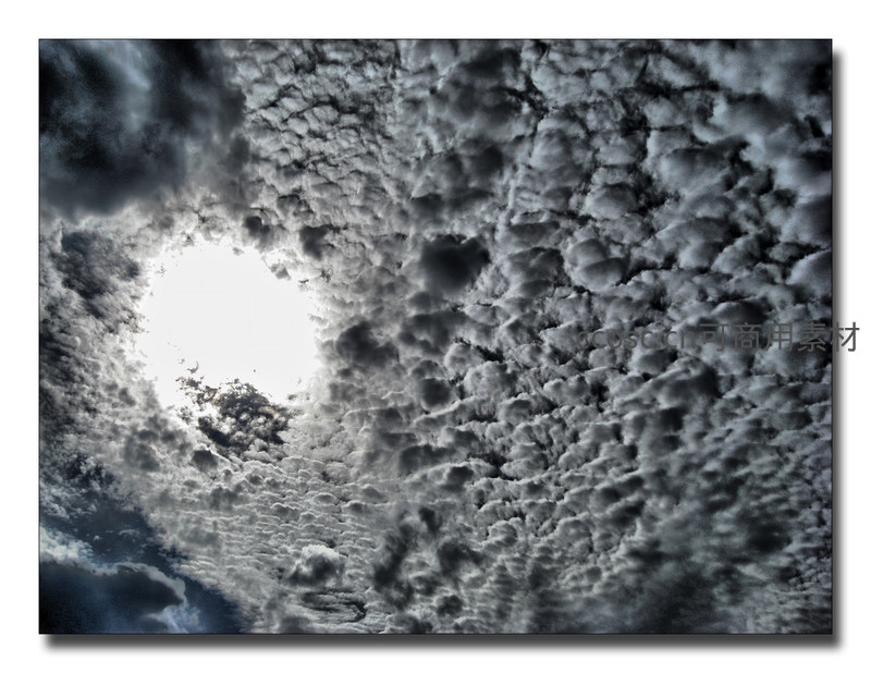 以黑白滤镜呈现的密集云层,其粗糙纹理如同翻滚的波涛,中央一个明亮的“天眼”洞开,形成强烈的视觉冲击力。