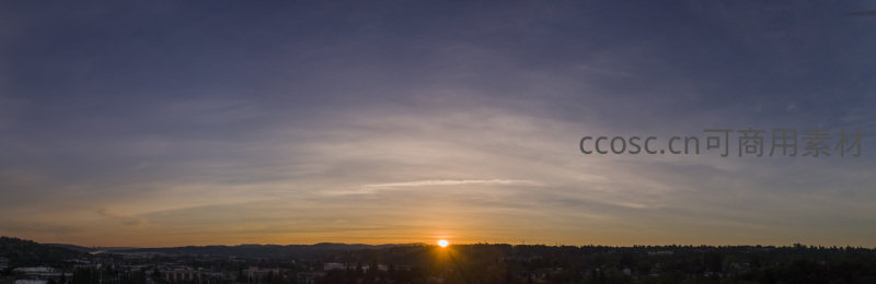 太阳缓缓沉入城市地平线,暖光穿透薄云,为楼宇与森林披上金纱。广角镜头捕捉这壮丽瞬间,展现都市与自然交融的温柔时刻。