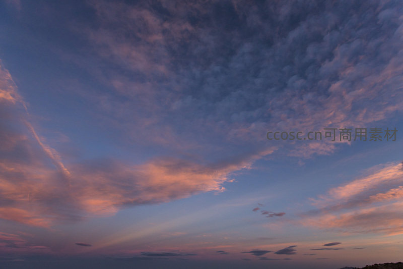 黄昏时分,天空被柔和的粉紫色调笼罩,云层如轻纱般飘逸流动,光影交织,营造出梦幻而宁静的氛围,令人心旷神怡。