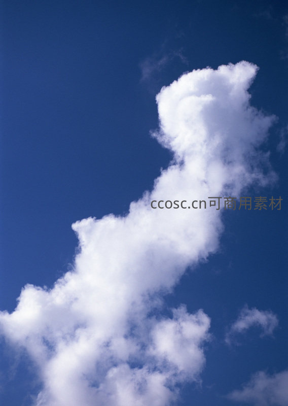 纯净的深蓝色天空背景下,一朵洁白蓬松的云彩优雅地向上伸展,形态轻盈灵动,仿佛在空中舞动,带来宁静与遐想。