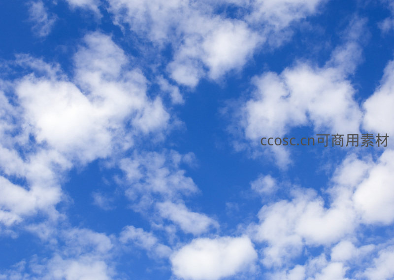 纯净的蓝色天空中漂浮着轻盈洁白的云朵,阳光明媚,空气清新,是典型的理想天气背景图。