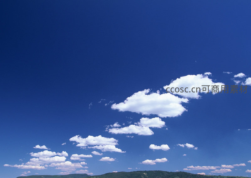 深邃的蓝色天空中,几朵洁白的云朵悠然飘浮,下方连绵的青山为背景,画面简洁而富有诗意,传递出远离尘嚣的宁静之感。