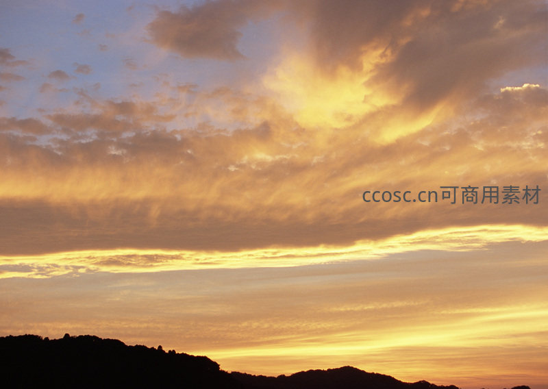 连绵的山峦化作黑色剪影,衬托着被夕阳点燃的漫天云霞,金黄与橙红交织,展现出大自然最辉煌的时刻。