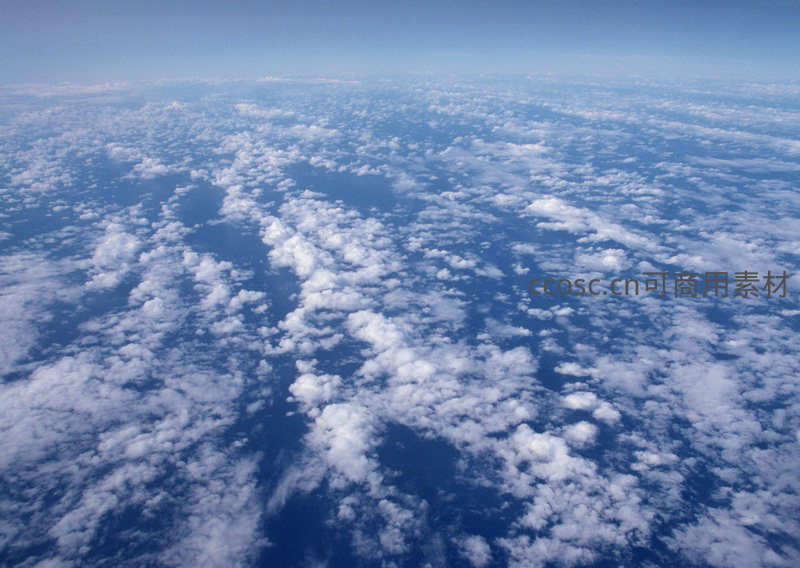 清澈的蓝天中,蓬松洁白的云朵星罗棋布,宛如散落的珍珠,营造出宁静、开阔、令人心旷神怡的高空视觉体验。