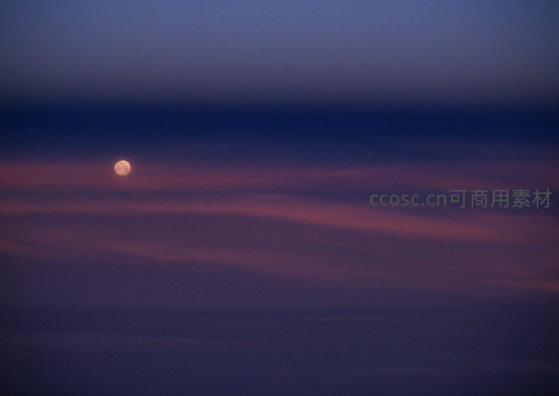 一轮皎洁满月高悬于粉紫色云层之上,夜空深邃静谧,云彩如薄纱轻覆,营造出神秘而温柔的意境。
