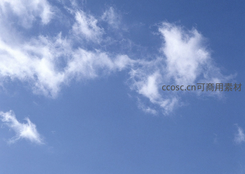 稀薄而飘逸的卷云如丝带般横贯天际,在清澈的蓝色背景下勾勒出柔和的线条,营造出静谧、梦幻的氛围。