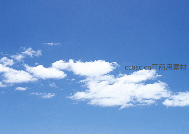 纯净的蔚蓝色天空下,几朵蓬松洁白的云彩悠然飘浮,阳光明媚,空气清新,营造出宁静祥和的氛围。