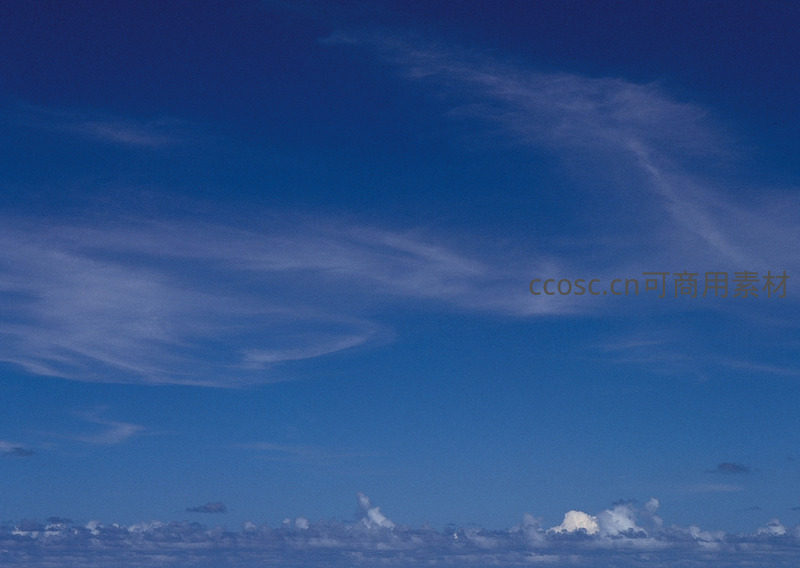 从飞行器高度俯瞰,下方是连绵云海,上方是清澈深蓝的天空,纤细卷云横贯视野,营造出空旷辽远、令人心旷神怡的视觉体验。