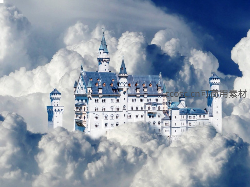 童话城堡悬浮于云端仙境