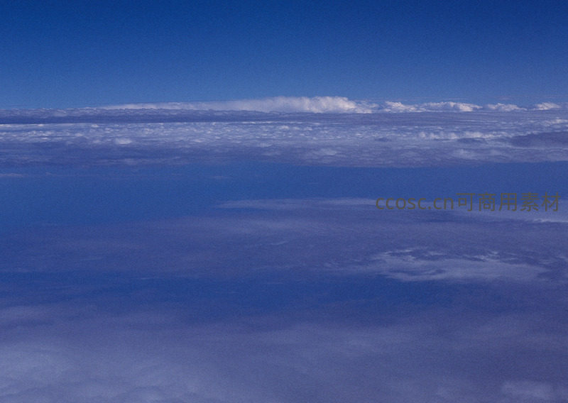 不同高度的云层形成清晰的分界线,上层洁白蓬松,下层呈淡蓝色雾状,构图富有层次与深度。