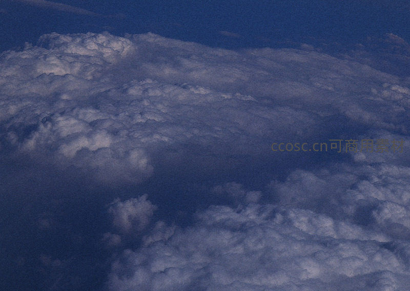 高空俯瞰云海翻腾,蔚蓝天空下的壮丽景象