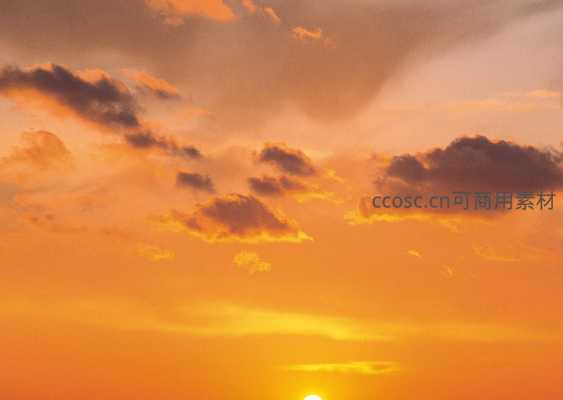 太阳缓缓沉入地平线,将云层边缘镀上金边,整个天空弥漫着暖色调,展现出大自然最温柔而震撼的瞬间。