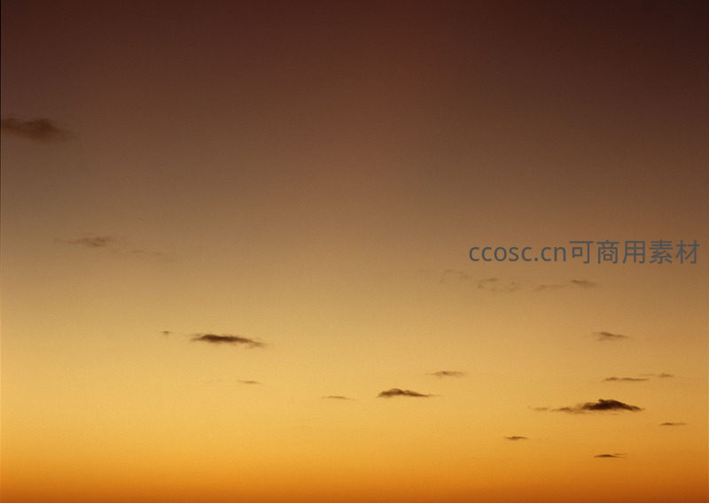 温暖的金色阳光洒满天际,稀疏的云朵如墨点般点缀在渐变的橙黄天空中,带来一天结束时的安详与温柔。