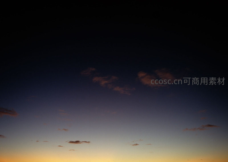深蓝夜幕低垂,几缕橙红云霞轻柔飘荡,天边泛起温柔的暖光,营造出静谧而梦幻的黄昏氛围。