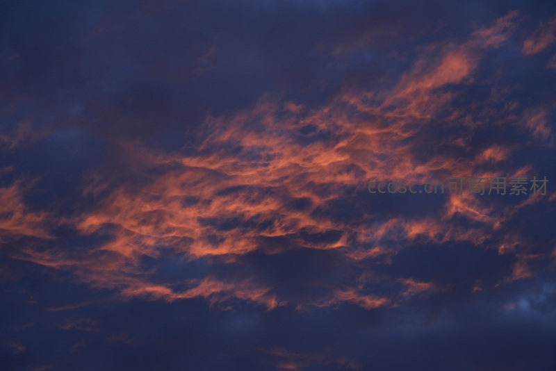 天空被暮色笼罩,云朵却因夕阳映照而焕发赤金色泽,如锦缎般铺展,展现出日落时分天空独有的戏剧性与诗意美感。