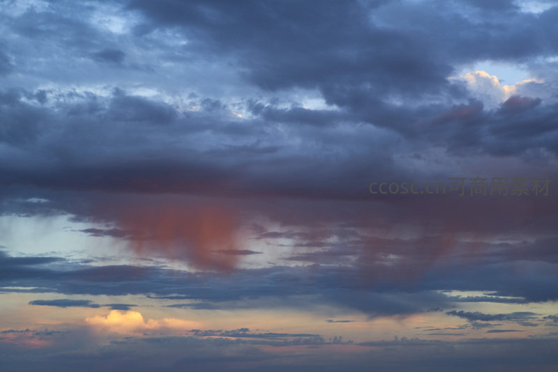深蓝与橙红交织的云层在黄昏时分铺满天际,光影变幻营造出梦幻般的视觉盛宴,令人沉醉于大自然的鬼斧神工。