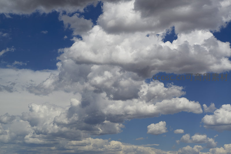 蔚蓝天空下朵朵白云形态各异,层次分明,阳光照射下明暗有致,构成一幅宁静和谐的天然画卷,令人心旷神怡。