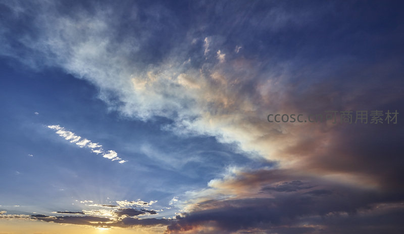 在日落时分,金色的阳光穿透厚重的云层,形成耀眼的光束,将云朵边缘染成温暖的橙红色,展现出大自然壮丽而温柔的一面。