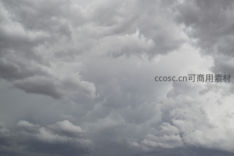 巨大的云团在空中激烈运动,形态多变,层次分明,强烈的明暗对比突显了其蕴含的能量,是典型强对流天气来临前的征兆。