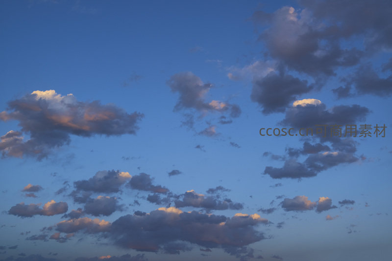 夕阳西下,云朵被染上粉橙暖光,与渐暗的蓝紫天幕交织,营造出静谧而浪漫的黄昏氛围。
