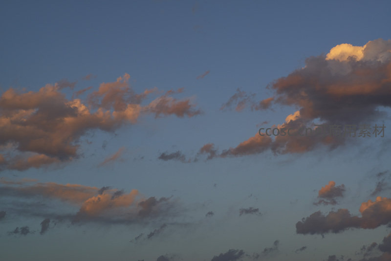 傍晚时分,天空被夕阳染成温暖的橙红色,云朵层层叠叠,光影交错,营造出宁静而壮美的视觉效果,令人沉醉于大自然的鬼斧神工。