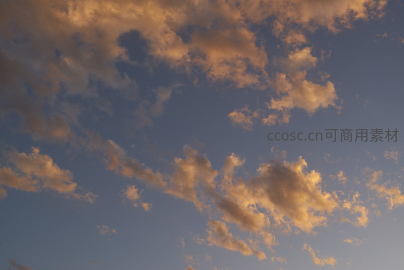 夕阳西下,金色光芒穿透云层,在蔚蓝天空中勾勒出柔和的暖色调,云朵如棉花糖般轻盈飘逸,构成一幅充满诗意与宁静的自然画卷。