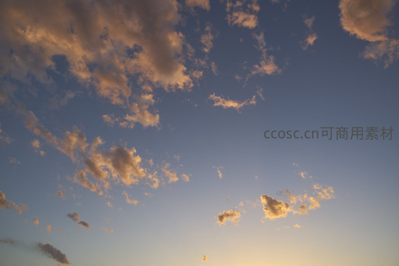天空中云朵随风轻舞,被夕阳镀上柔和的金边,远处天际线渐变的色彩温柔而静谧,仿佛时间在此刻凝固,带来心灵的平和与慰藉。