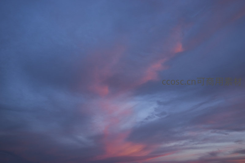 黄昏时分,天空被渲染成梦幻的紫红色调,薄云如丝带般轻柔飘动,营造出静谧而浪漫的氛围,令人沉醉。