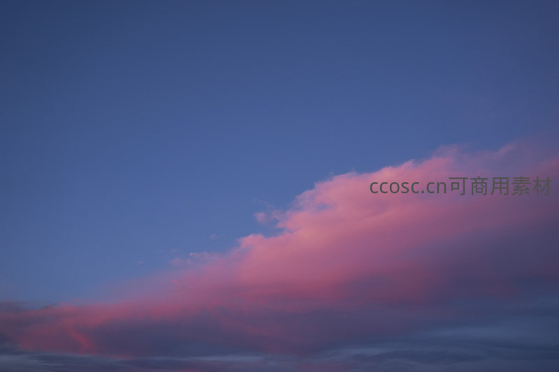傍晚时分,粉紫色的云层在深蓝天空中缓缓铺展,色彩层次丰富,营造出宁静而梦幻的视觉效果,令人沉醉于大自然的鬼斧神工。