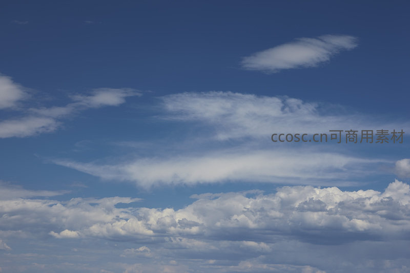 高空中纤细的卷云如丝带飘逸,下方厚重的积云层层叠叠,冷暖色调交融,构成一幅富有层次感的动态天幕画卷。