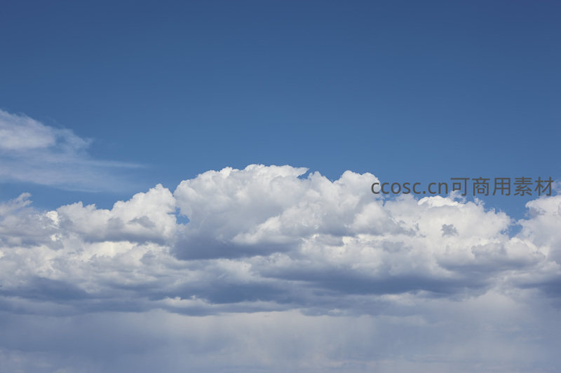 广阔的湛蓝天空中,几团洁白蓬松的云朵悠然漂浮,形态各异,底部略带阴影,营造出清新、宁静且充满诗意的氛围。