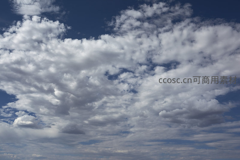 大片蓬松云朵如棉絮般铺展于深邃蓝天之上,营造出静谧辽阔的视觉感受,是理想的自然背景素材。