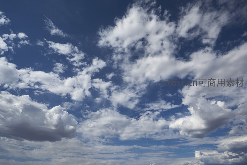 深邃的蓝色天幕上,洁白蓬松的云团自由舒展,如画般宁静而辽阔,令人心旷神怡,感受天地之大美。