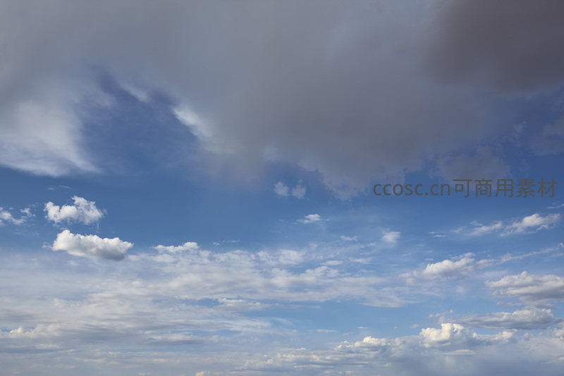 广阔的蓝色天幕上,形态各异的云朵自由舒展,从蓬松的积云到飘渺的薄云,共同构成一幅宁静而富有诗意的画面。