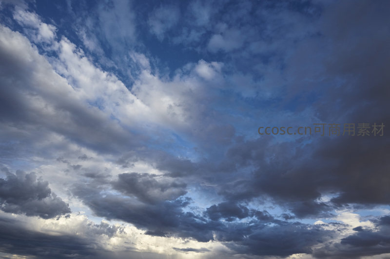 厚重的云团在天空中缓慢移动,明暗对比强烈,边缘被夕阳染成金黄,展现出大自然瞬息万变的磅礴气势。