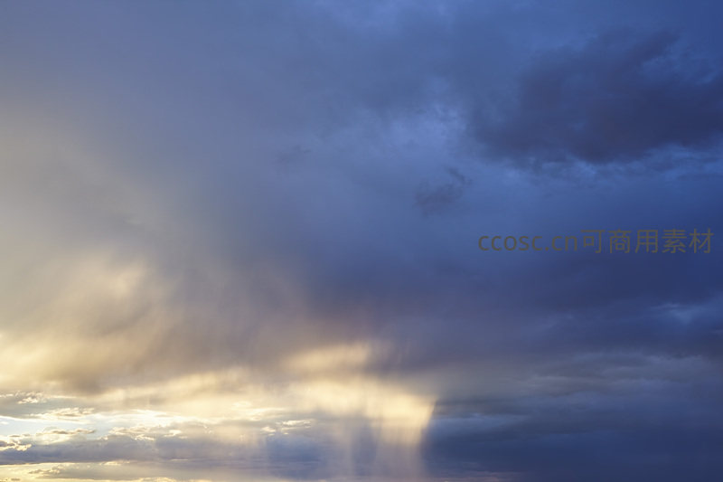 黄昏时分,阳光从厚重云层裂隙中倾泻而下,形成耀眼光柱,照亮下方云朵,营造出梦幻而庄严的视觉效果。