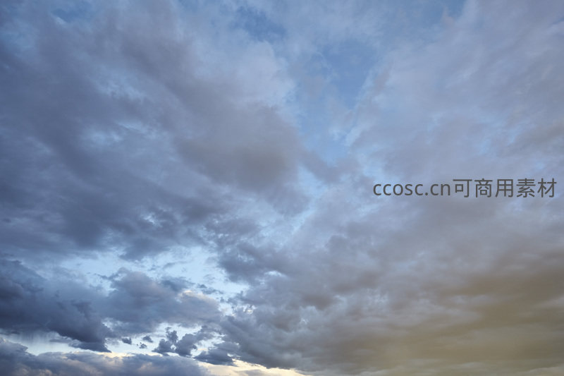 广袤云层在夕阳余晖中泛起金色光芒,云朵形态多变,层次分明,展现出大自然瞬息万变的瑰丽与恢弘气势。