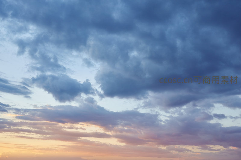 柔和的暮光轻柔地铺展在层层叠叠的云朵之上,粉紫与淡蓝交融,营造出静谧梦幻的氛围,令人心旷神怡。