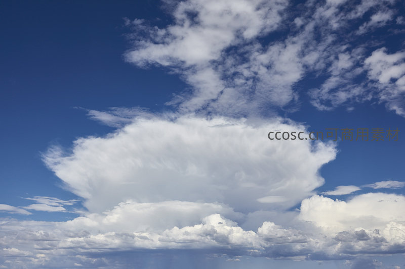 一朵庞大厚重的积云傲然耸立于晴朗的蓝天之中,边缘层次分明,展现出大自然的磅礴气势与动态之美。