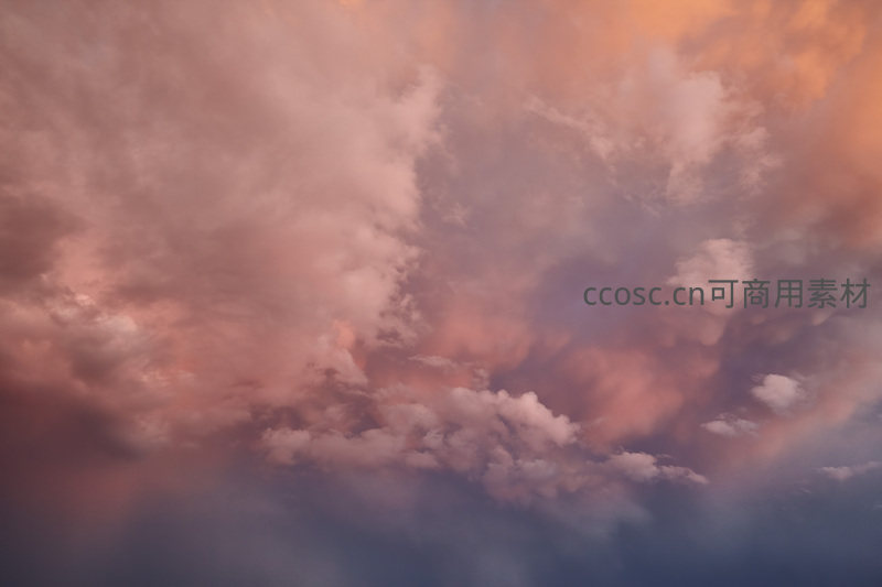 柔和的粉紫色云朵如波涛般在天际翻滚,阳光穿透云隙洒下温暖光辉,营造出静谧而浪漫的黄昏氛围,令人心驰神往。