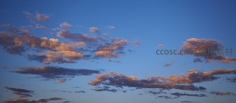 夕阳西下,云朵被染成金橙色,与深蓝天空形成绝美对比,营造出静谧而壮丽的自然画卷。