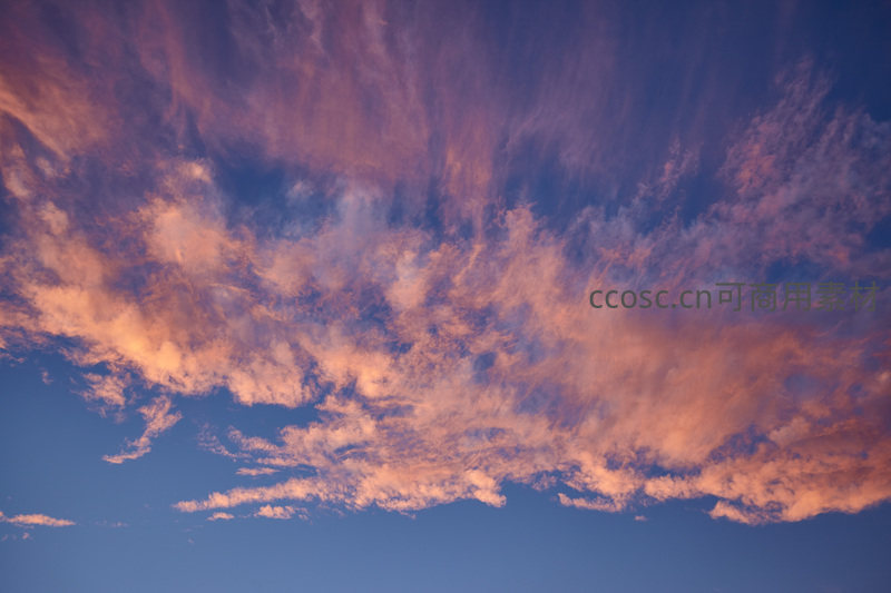 天空中大片云层被夕阳映照成炽热的橘红与紫蓝交织,层次分明,宛如一幅天然油画,展现出大自然的磅礴与浪漫。