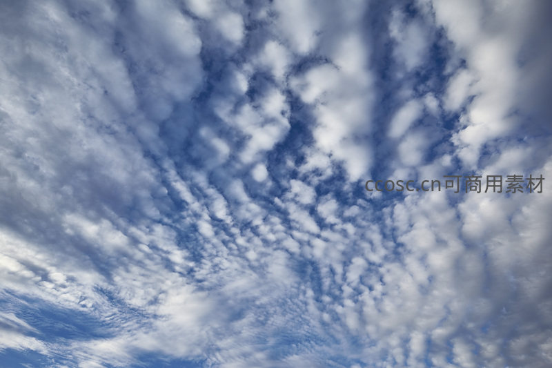 晴朗天空中布满蓬松洁白的积云,如棉花糖般轻盈散布,与湛蓝背景相映成趣,传递出纯净、舒适与无忧无虑的氛围。