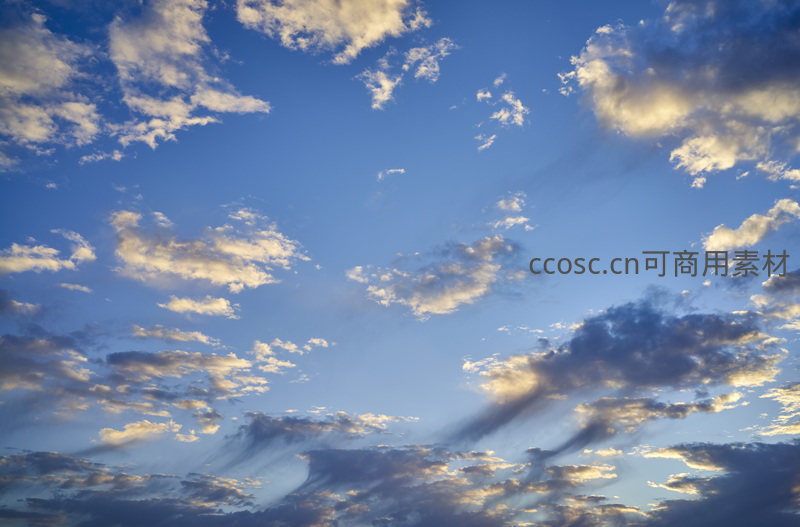 黄昏时分,金色与淡紫色的霞光浸染云层,层层叠叠铺满天幕,展现大自然壮丽而温柔的暮色画卷。