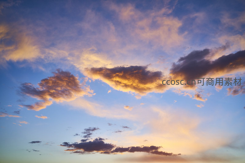 夕阳西下,天空被染成一片绚丽的橙红色,层层叠叠的云朵在光线下变幻出丰富的色彩层次,令人沉醉于大自然的壮丽画卷中。