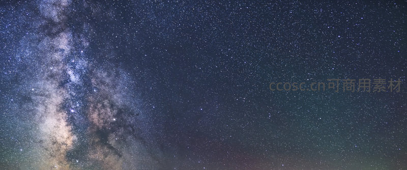 广角镜头捕捉到银河从左下角斜向延伸至右上角,星群密集闪烁,背景深蓝渐变至地平线微绿,展现宇宙的辽阔与静谧。